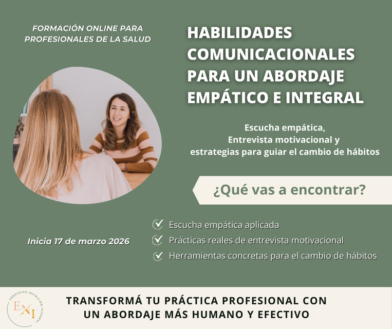 - Incorporar herramientas de escucha empática, entrevista motivacional y acompañamiento estratégico del cambio de hábitos.